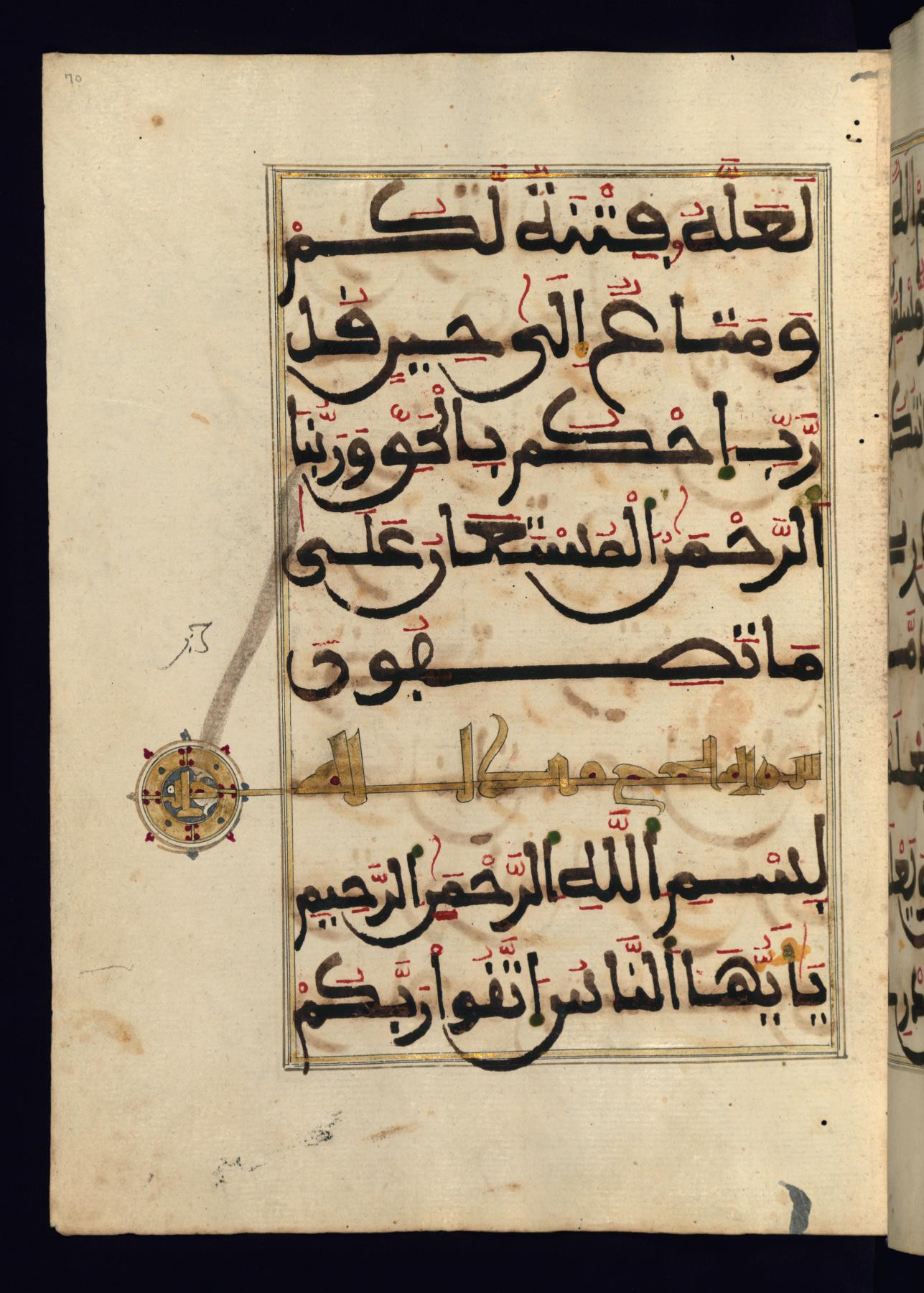 Названия остальных глав выполнены также в Новом Аббасидском стиле (Сломанный Курсив) золотыми чернилами с декоративными медальонами с боку.